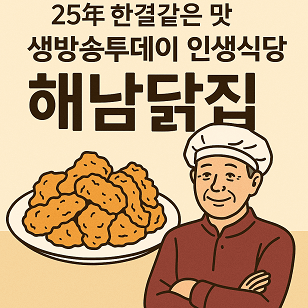 25년간 한결같은 맛을 지켜온 정통 옛날통닭집이 서울 화양동에 있습니다. 생방송투데이 인생식당으로 소개되며 ‘치슐랭맛집’으로까지 선정된 <해남닭집>, 그 비결이 궁금하시다면 지금부터 집중해 주세요. 바삭한 후라이드, 중독성 있는 간장·양념치킨, 그리고 진심이 담긴 손맛까지—이 글을 통해 치킨맛집의 진수를 느껴보시길 바랍니다.